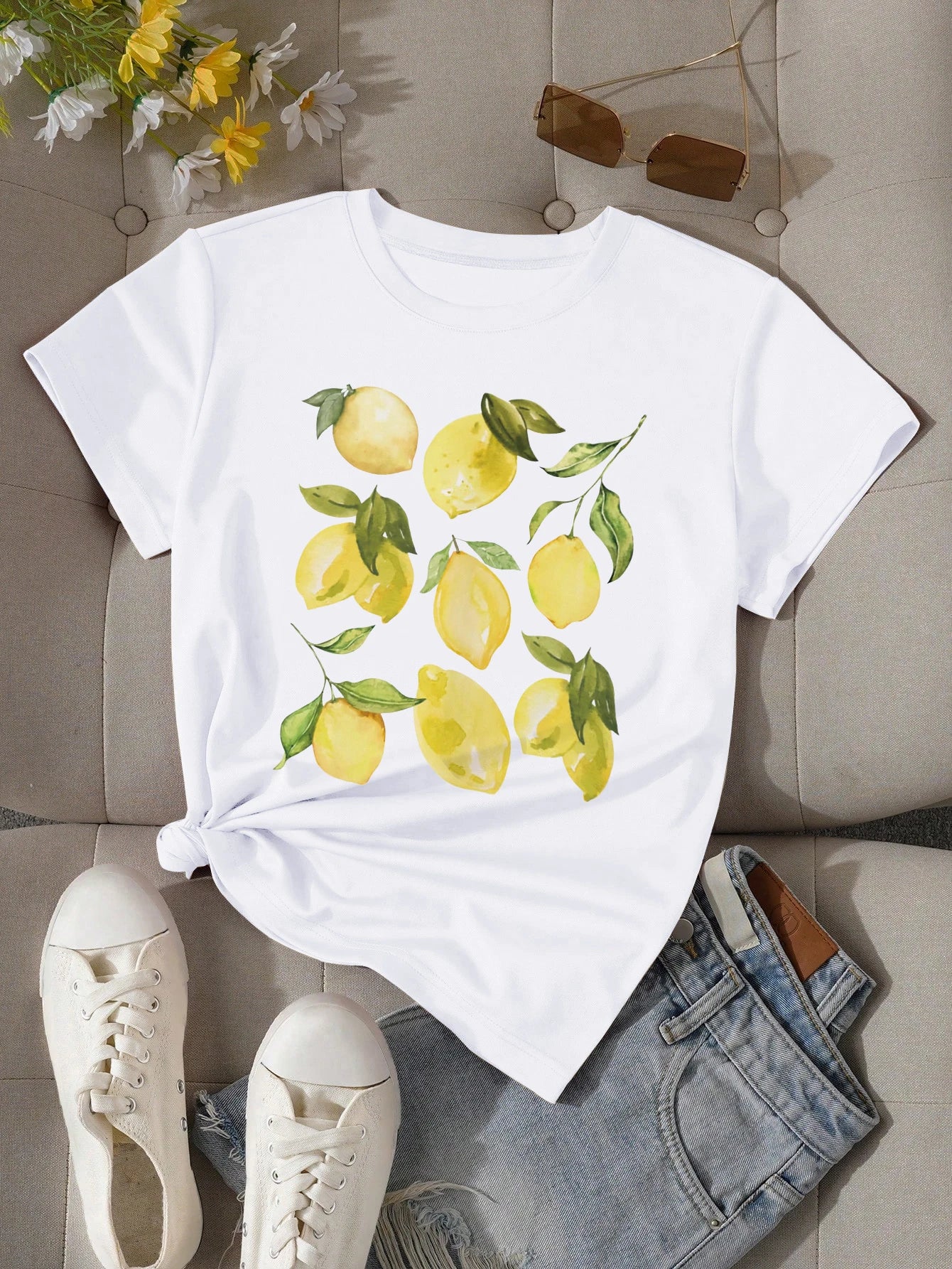 Lightweight cotton tee with a loose fit and charming lemon print — fresh vintage vibes for everyday wear.